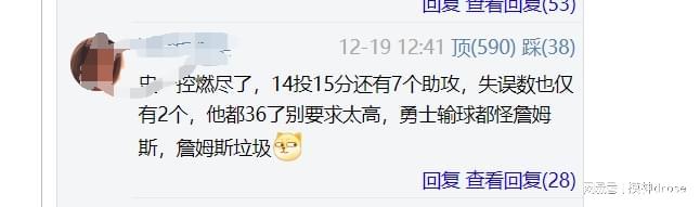 最后1个球迷说,如果换成詹姆斯14投3中,那会评论过万。