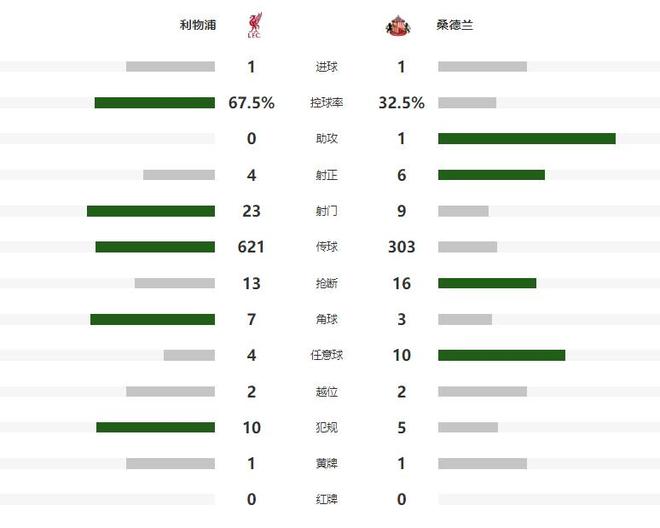 第43分钟表现非常活跃的索博斯洛伊,左路轰出一脚电梯球远射,桑德兰门将注意力非常集中,奋勇将皮球扑出,1分钟之后,利物浦卷土重来,麦卡利斯特点球点附近甩头攻门,可惜运气不佳,皮球击中立柱出了底线,得势不得分的利物浦,只能带着0-0的比分,回到了中场更衣室。